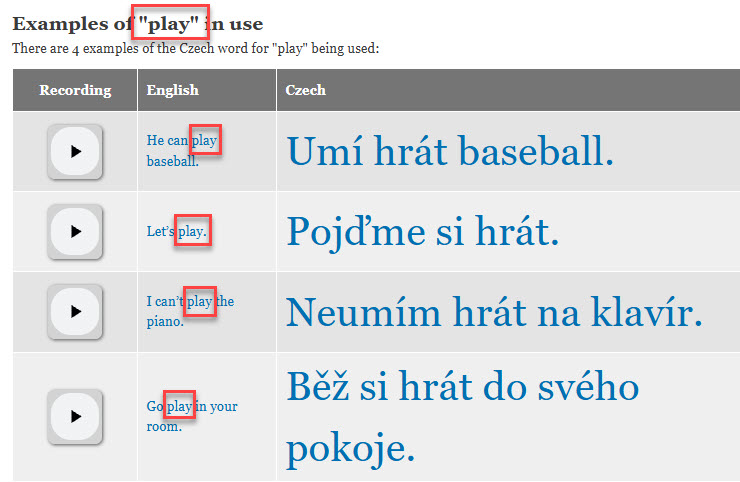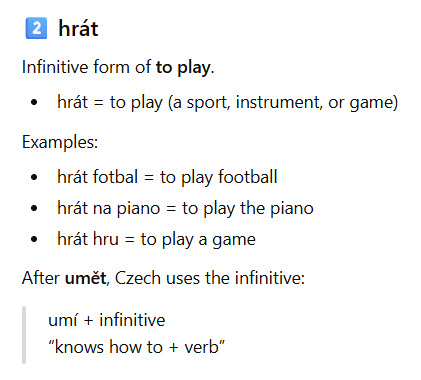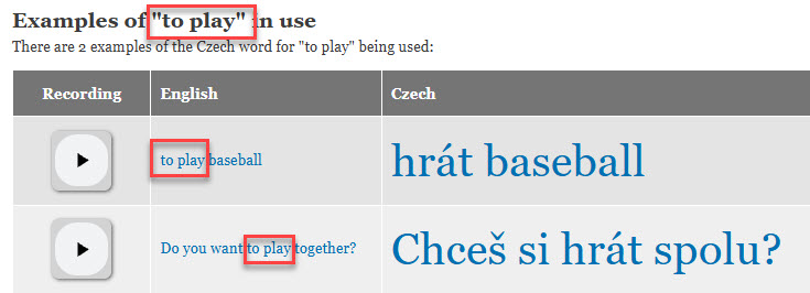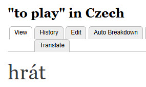 but we see an entry with the identical Czech, and since this the identical entry is an infinitive ("to play"), then we should investigate further: